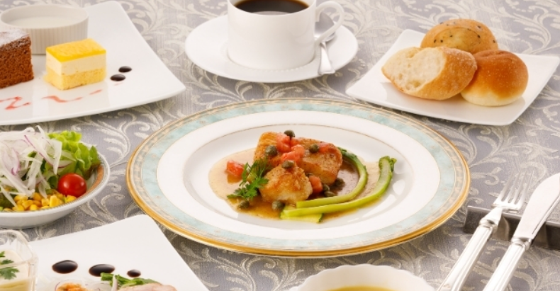 洋食コース料理のご昼食をごっくりとお召し上がりください