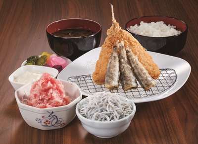 ご昼食は近海で採れた“常磐もの”の『めひかり』の唐揚げやネギトロ、しらすのグルメ膳をご用意させていただきます。