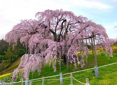 推定樹齢1000年を越える日本初の国の天然記念物の桜、岐阜県の『根尾谷淡墨桜』・山梨県の『山高神代桜』と共に日本三大桜とも呼ばれております『三春の滝桜』は、開花期には四方に伸びた枝から薄紅色の小さな花を咲かせ、その様子が流れ落ちる滝の様の事から『滝桜』と呼ばれるようになったそうです。