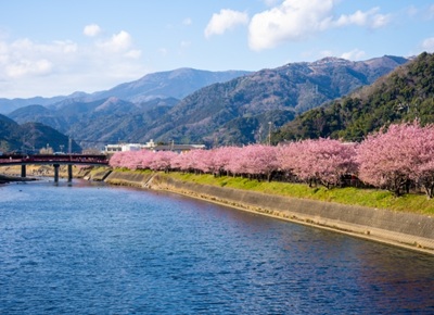 伊豆の河津町発祥の早咲きの桜、濃いピンク色が特徴的な『河津桜』が川沿いに黄色のなの花と合わせて織りなす早春の景色にご案内させていただきます♪
