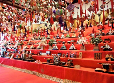 3月は付近の桃の花まつりの会場の一部、県内最大級の雛飾り・吊るし雛飾りの展示がなされており、華やかになっております。