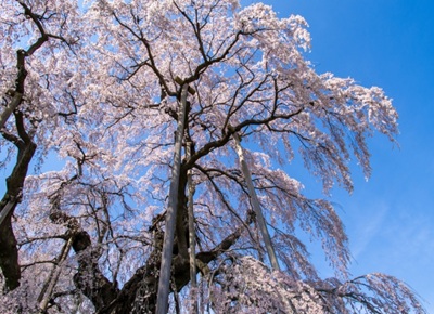 推定樹齢1000年を越える日本初の国の天然記念物の桜、岐阜県の『根尾谷淡墨桜』・山梨県の『山高神代桜』と共に日本三大桜とも呼ばれております『三春の滝桜』は、開花期には四方に伸びた枝から薄紅色の小さな花を咲かせ、その様子が流れ落ちる滝の様の事から『滝桜』と呼ばれるようになったそうです。